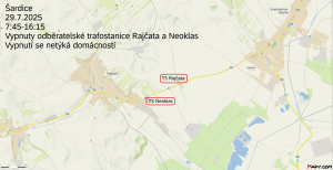 Vypnutá oblast: Odběratelské trafostanice Šardice RAJČATÁRNA (autovrakoviště) a Neoklas (vinařství)
