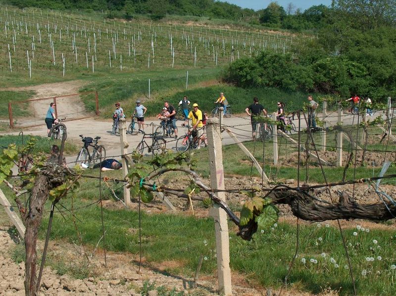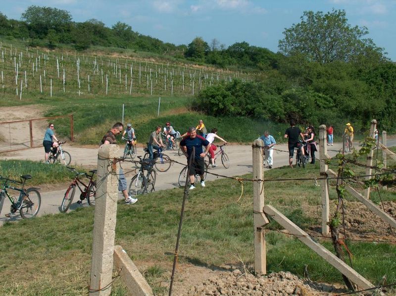 Letošní otevření vinařské cyklostezky v Šardicích v neděli 3.5.2009. Trať cyklistického pelotonu vedla kolem sklepů u hřiště, přes viniční trati Padělky, Požární čtvrtě, Dubový-Červenice, Kameny a Úlehle, ukončení u sklepů Za dědinů.