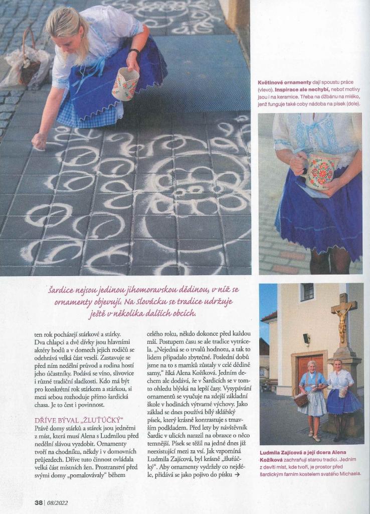 V Šardicích k nim tradičně patří ornamenty vysypávané před domy směsí písku a mouky.