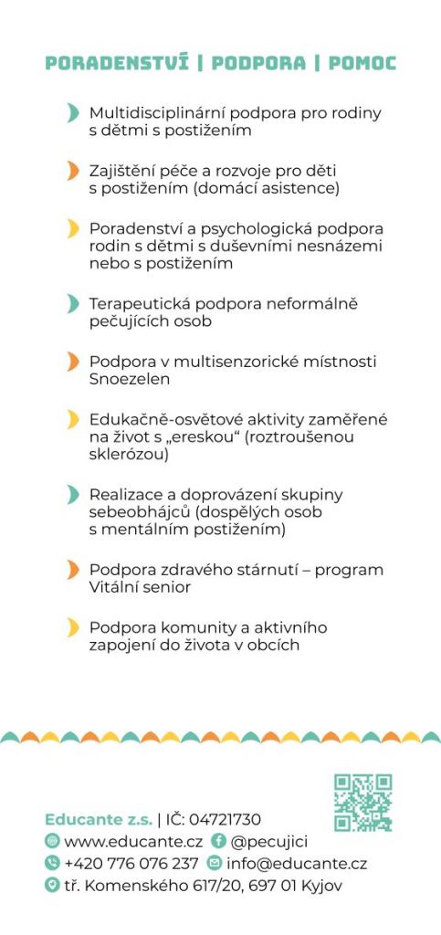 Poradenství, podpora a pomoc dětem, rodičům, neformálně pečujícím, seniorům, hendikepovaným