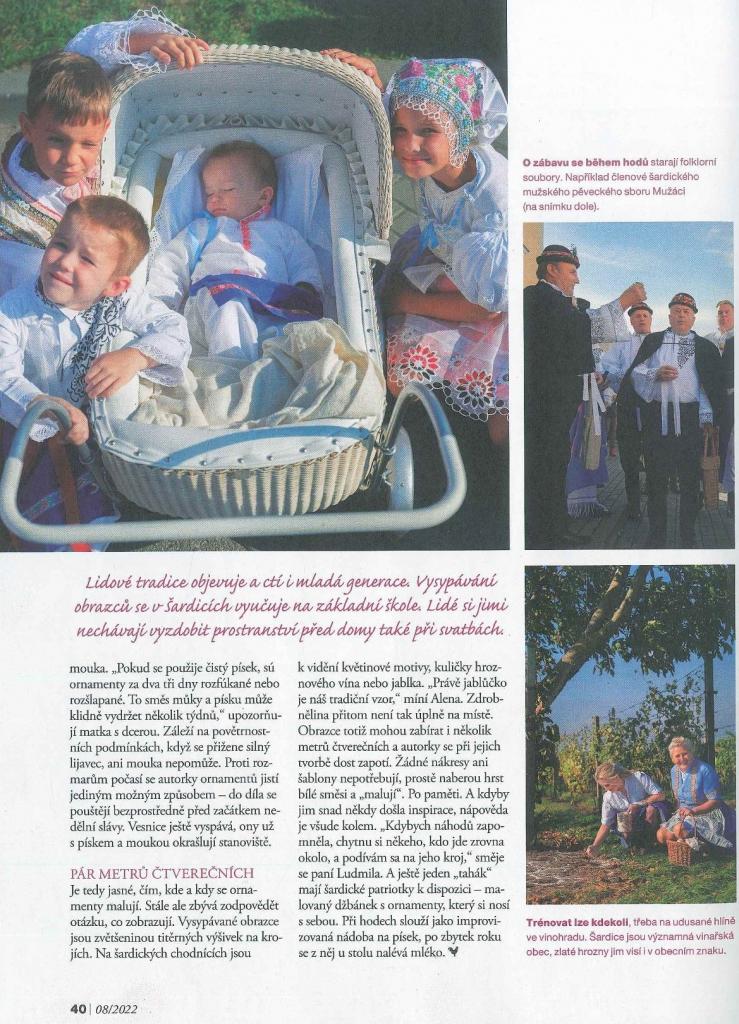 V Šardicích k nim tradičně patří ornamenty vysypávané před domy směsí písku a mouky.